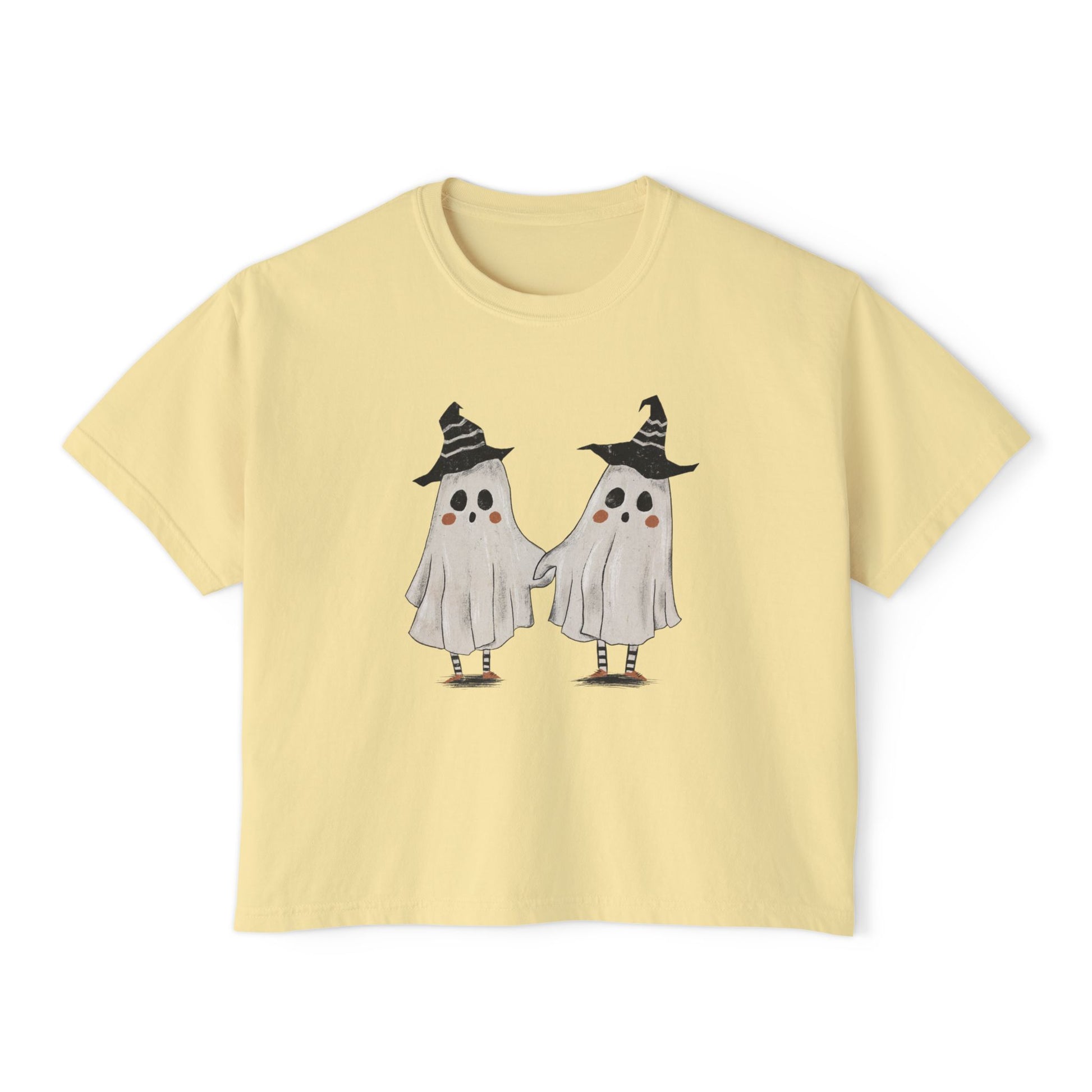 Unleash your playful side with this Women's Boxy Tee! Featuring a charming ghost design perfect for Halloween, this tee embodies a fun, relaxed vibe that enhances any casual outfit. Its boxy fit makes it comfortable for all-day wear while still being stylish enough to stand out. Ideal for spooky season festivities or laid-back gatherings, this tee is perfect for anyone who loves to celebrate Halloween in style. Wear it to parties, pumpkin patches, or cozy movie nights, and embrace the festive spirit!