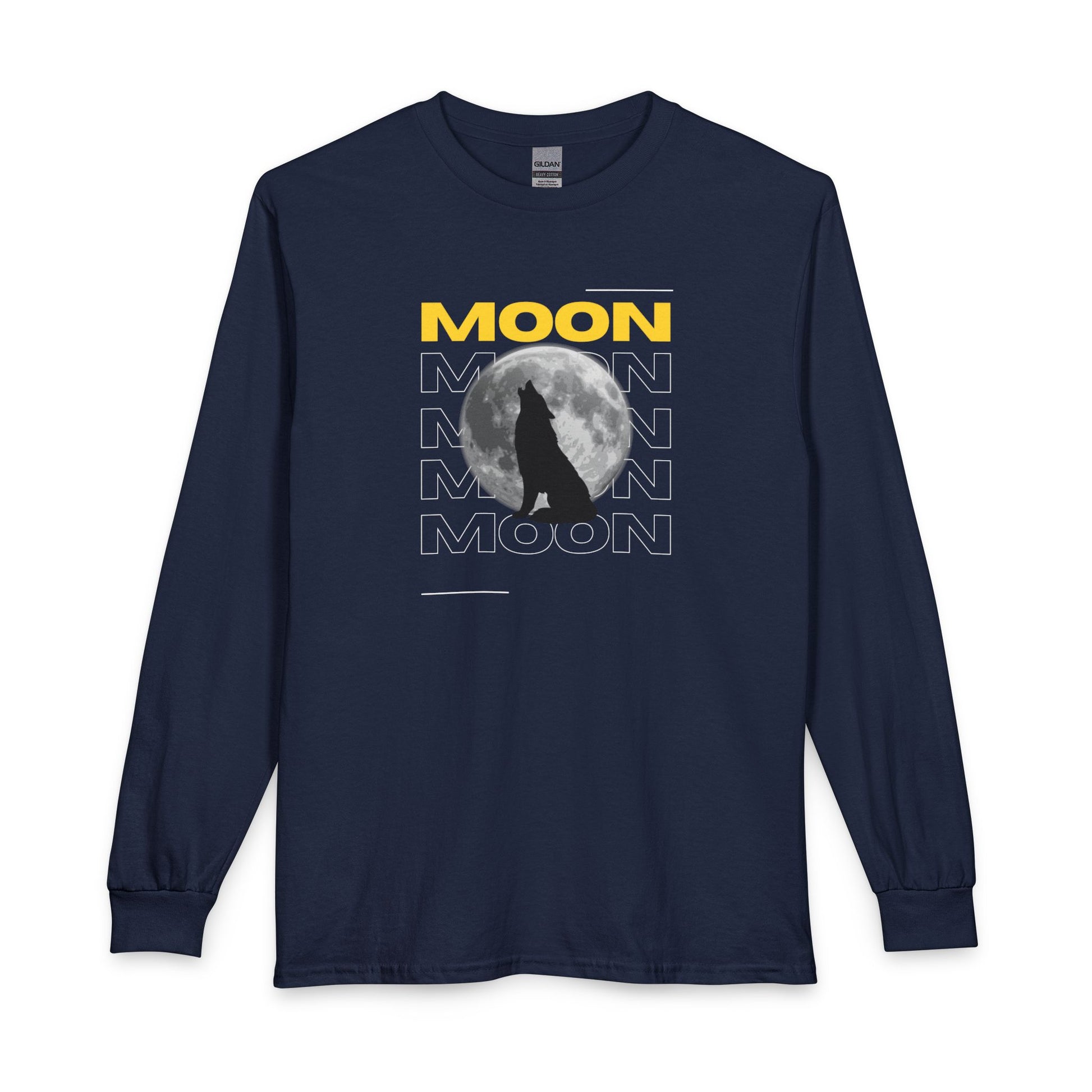 Under a bold yellow header that repeats the word “MOON,” a lone wolf silhouette rises against a luminous full moon. This long-sleeve cotton shirt feels like a late-night walk through pine-scented air — quiet, steady, and a little wild. The classic fit and ribbed cuffed sleeves keep the look clean while the graphic adds a storyteller’s edge. Wear it on crisp evenings by the campfire, on night drives through empty highways, or layered for concerts and outdoor gatherings where moonlight leads the mood. It’s for people who listen to nocturnal rhythms, who collect stories under stars, and who like their wardrobe to speak softly but with presence.