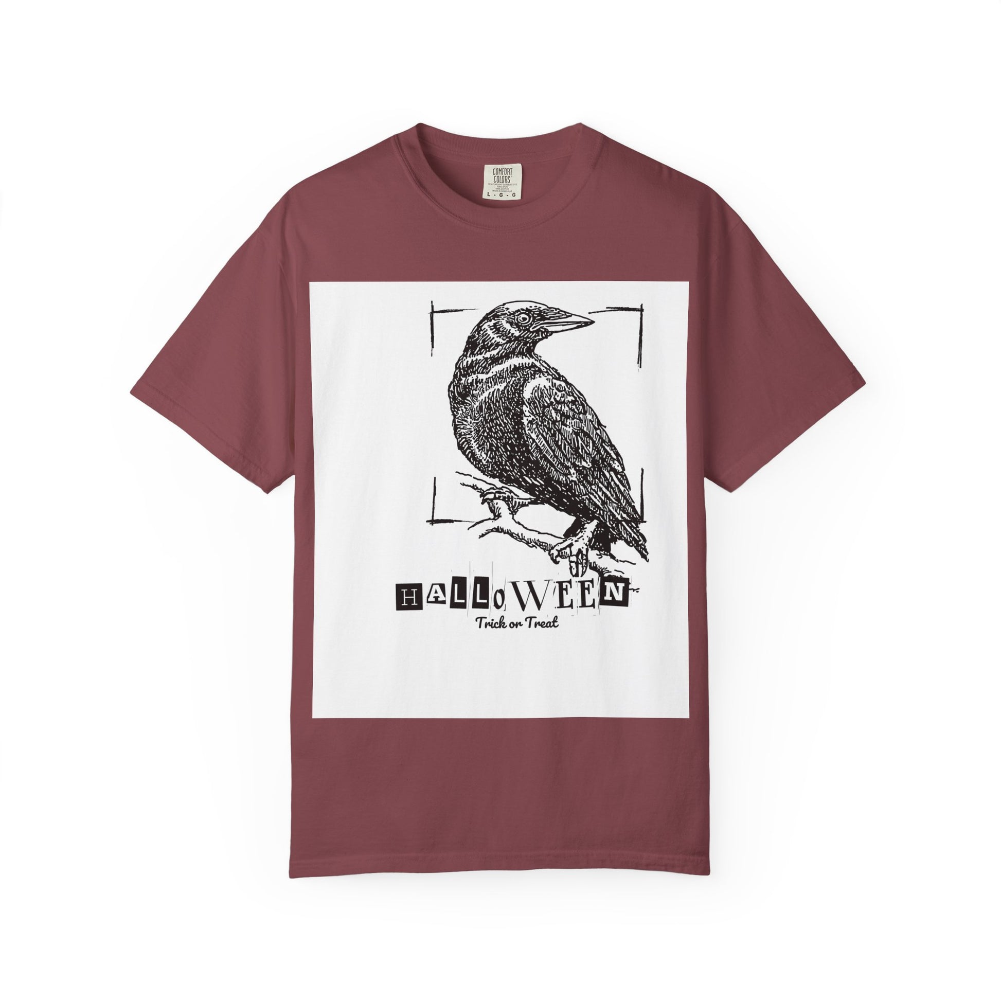 Embrace the spooky spirit of Halloween with this stylish Unisex Garment-Dyed T-shirt. Featuring a beautifully detailed raven graphic, this tee exudes a captivating blend of comfort and uniqueness. It's perfect for casual outings, Halloween parties, or cozy nights at home, making it a versatile addition to your wardrobe. Ideal for those who appreciate quality craftsmanship and a relaxed fit, this shirt caters to all ages and gender identities. Whether you're treating yourself or gifting a friend, this tee is perfect for Halloween celebrations, cozy fall gatherings, or simply expressing your love for the season's aesthetic. Available in a wide range of sizes and colors, it’s a versatile choice for any occasion.